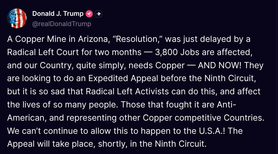 “Today, USGS, Secretary Burgum and President Trump sent a strong signal that copper is critical to the United States of America. CDA and its members strongly believe copper should remain on the final 2025 list and stand ready to unleash American copper like never before.”