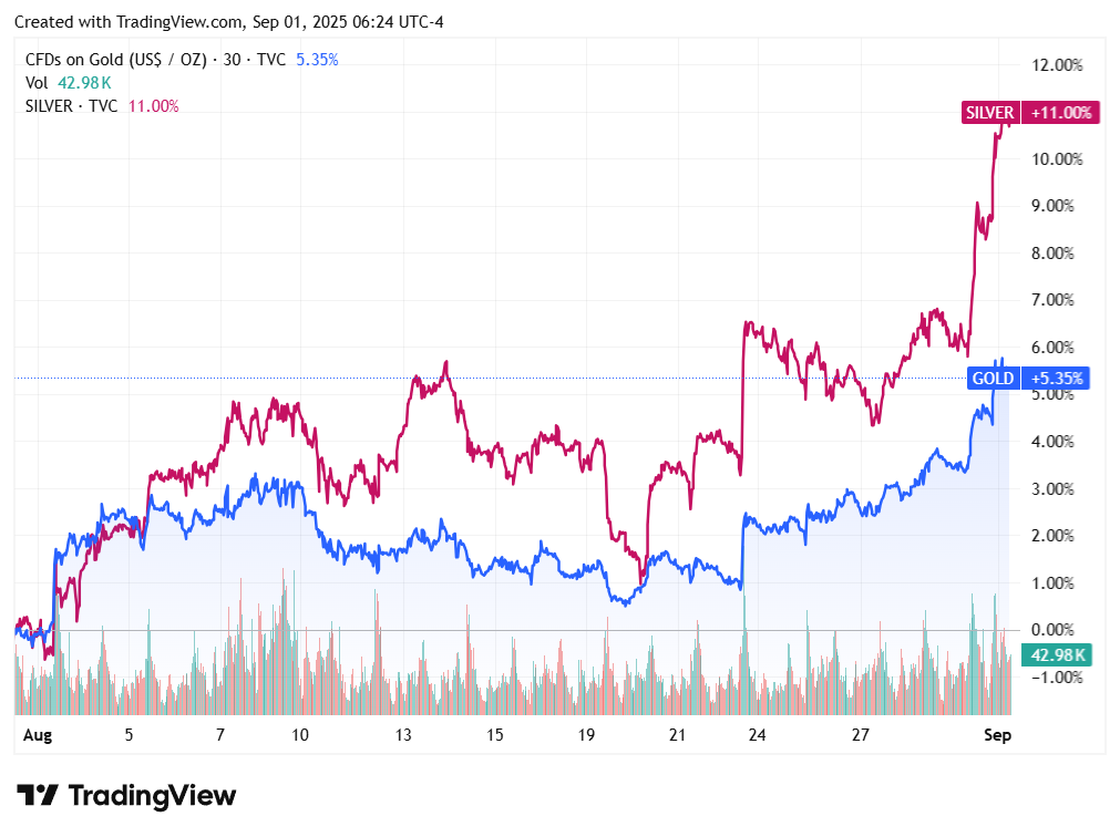 Precious metals have made a strong start to September, driven by geopolitical tensions, the increasing likelihood of a US interest rate cut and concerns over the independence of the US Federal Reserve.