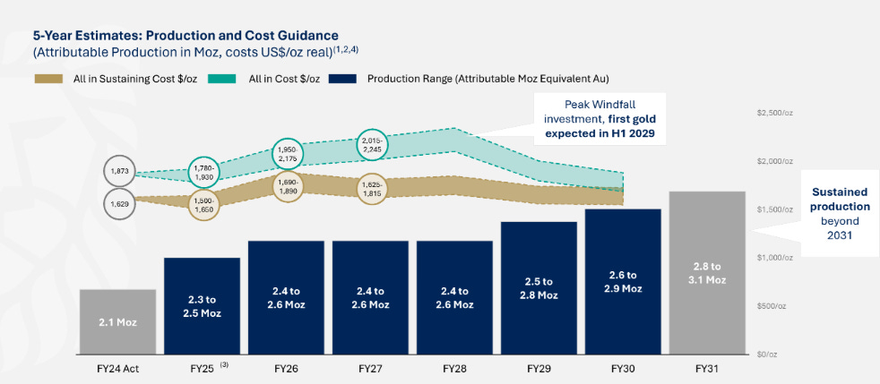 Guidance for 2025 is 2.25-2.45 million ounces of gold at all-in sustaining costs of US$1500-1650 an ounce and all-in costs of US$1780-1930/oz.