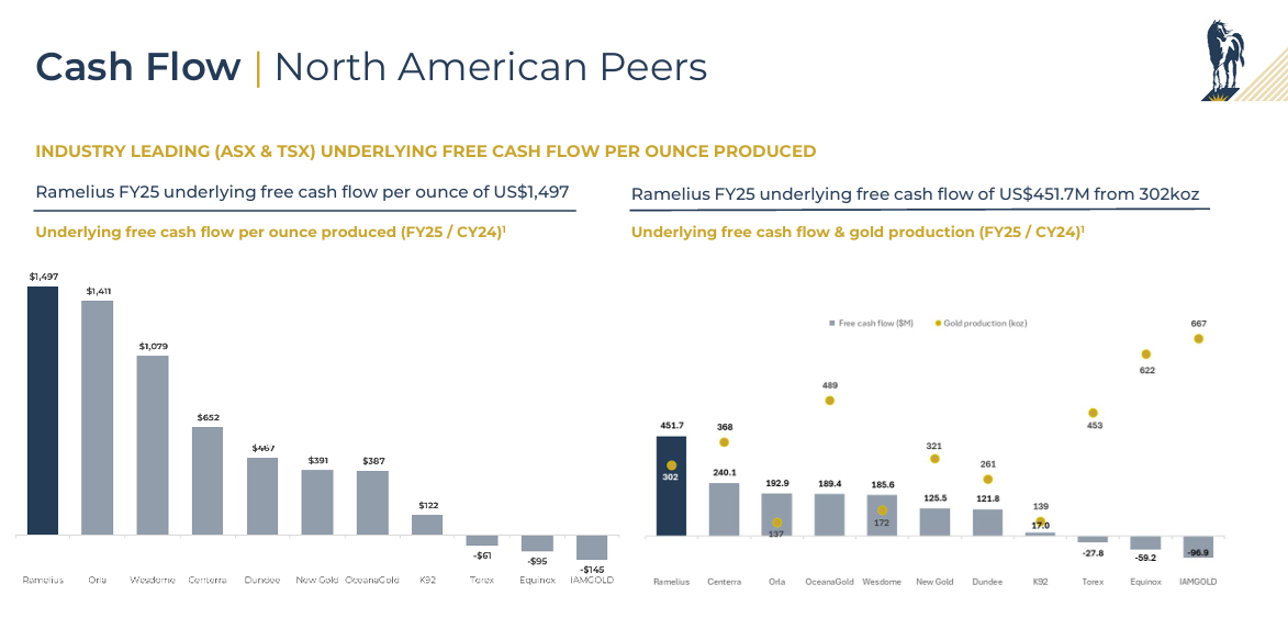 Ramelius reported full year underlying free cashflow of US$451.7 million and underlying free cashflow per ounce of US$1497/oz, bettering many of its North American peers.